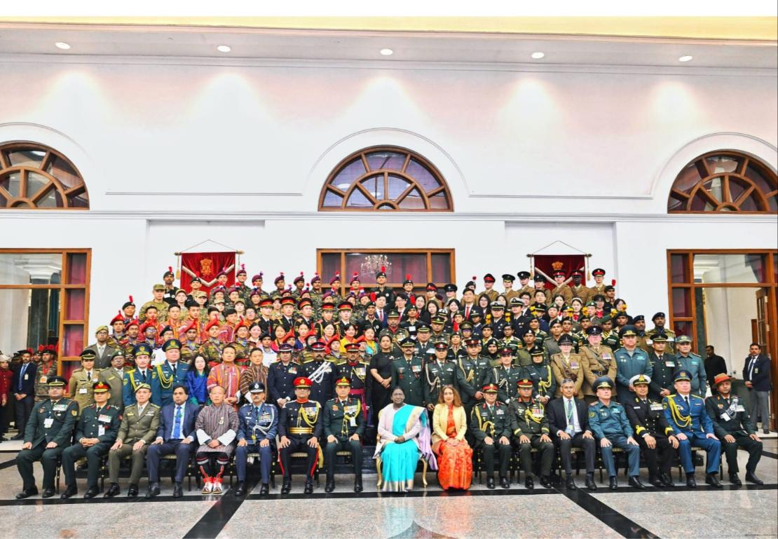 BNCC and other international cadets with the Honorable President of India, Droupadi Murmu at President Building as a part of Youth Exchange Program